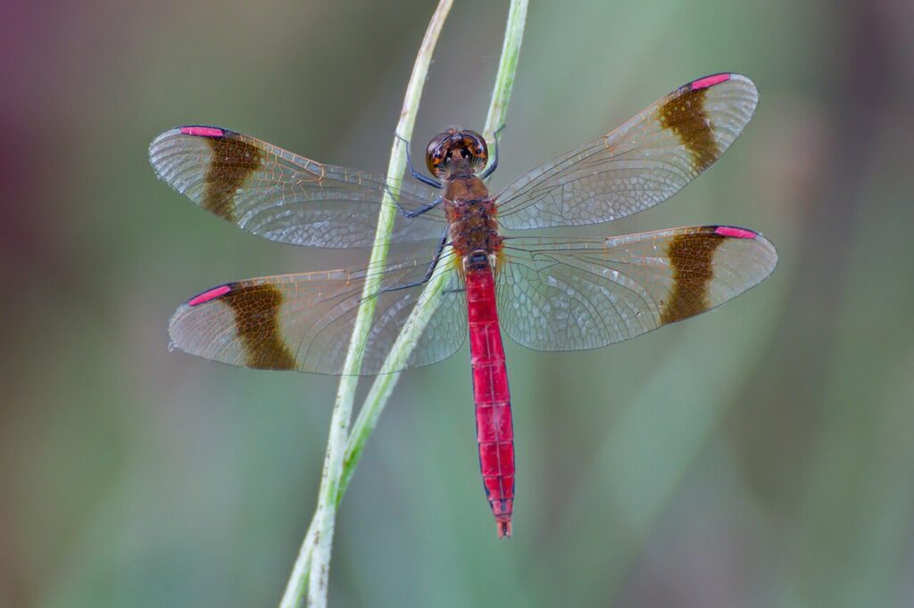 Невелика, але дуже впізнавана бабка, її крила мають темні поперечні смуги, ніби перев’язані стрічкою. Не Закарпатті цей вид занесений до регіональної Червоної книги й зустрічається лише в окремих локалітетах.