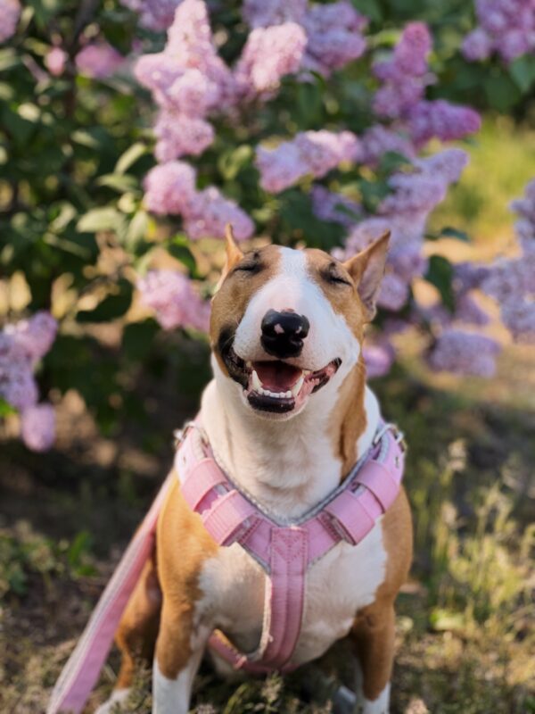Опис: Мініатюрний бультерʼєр Айза, 2 роки, має кумедну звичку робити «розкопки» ковдри та подушок, перш ніж влягтися спати 😁