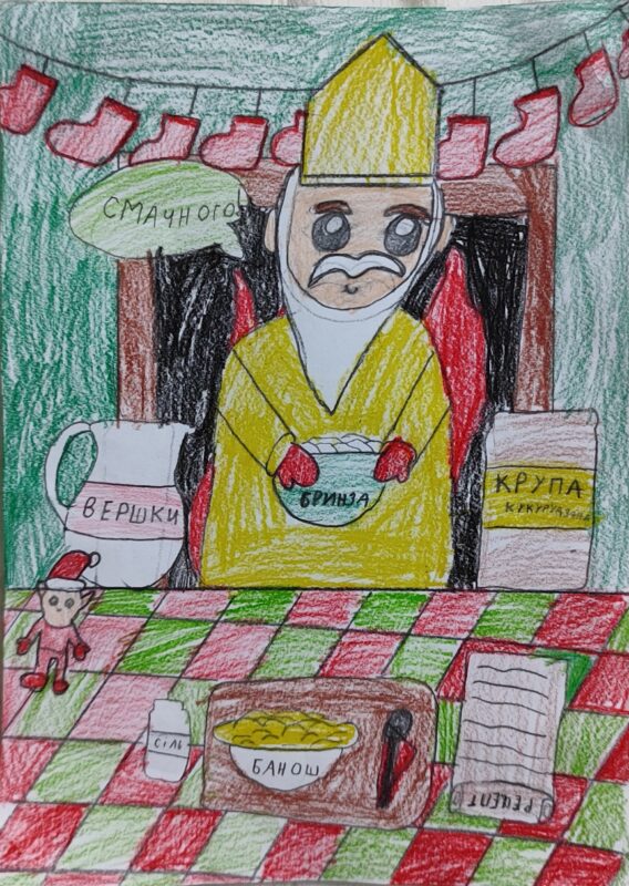 Обов’язкова деталь — на малюнку має бути зображений “Банош”, страва, що додає колориту та смаку зимовим святам.