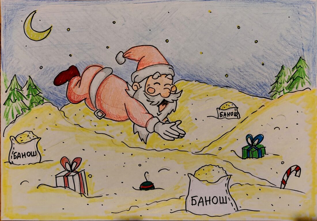 Обов’язкова деталь — на малюнку має бути зображений “Банош”, страва, що додає колориту та смаку зимовим святам.