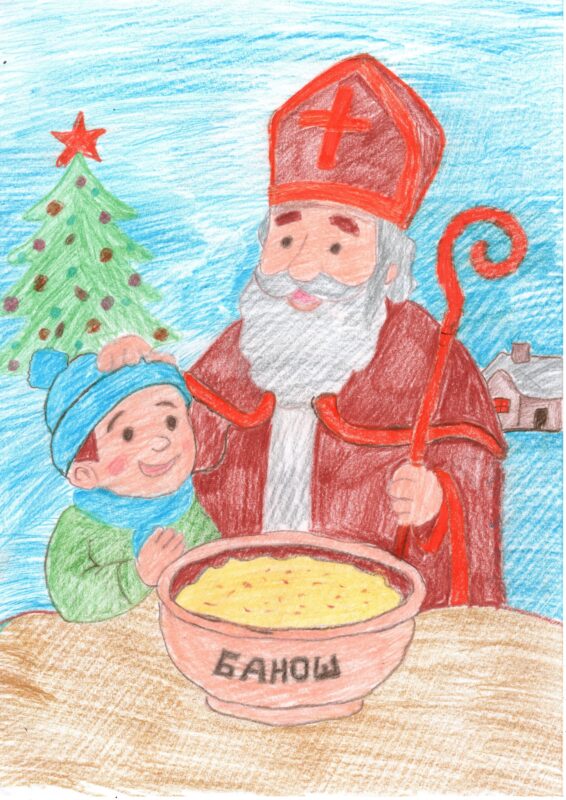 Обов’язкова деталь — на малюнку має бути зображений “Банош”, страва, що додає колориту та смаку зимовим святам.