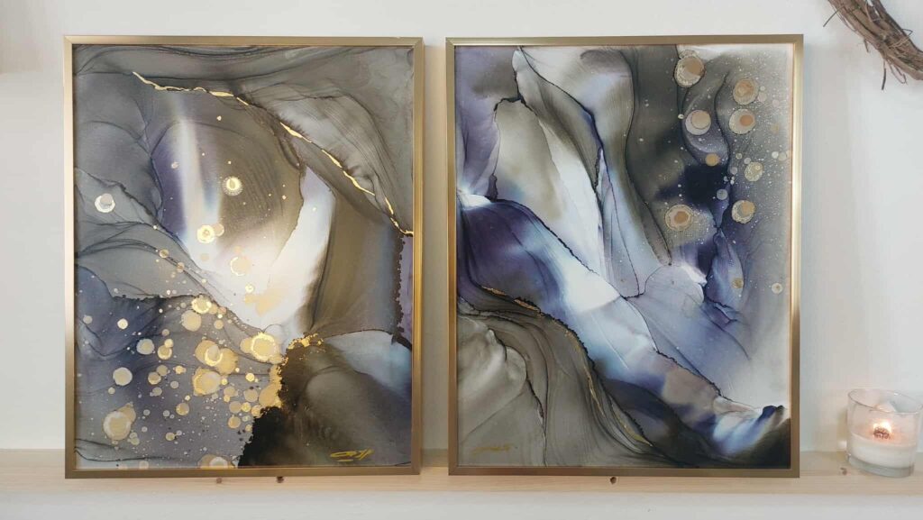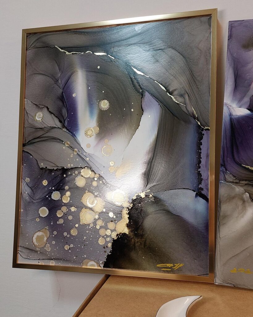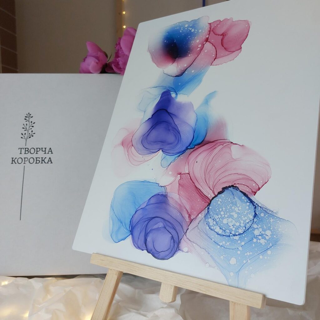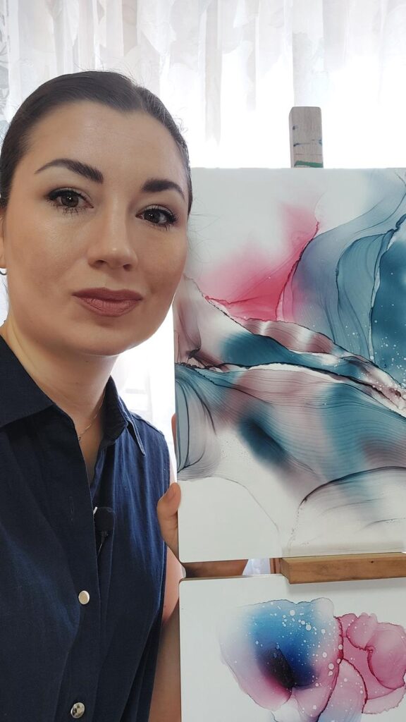 Я створюю абстрактні картини алкогольними чорнилами. Це дуже яскрава техніка, цікава, але не всім зрозуміла. Як зараз кажуть, такі картини дуже “залипательні”, глядачі на них дивляться і вмикається фантазія. Я не створюю якісь певні об’єкти, я пишу рух, відчуття. Але коли людина дивиться на картину, вона бачить щось своє. Мені казали, що бачили птаха чи дерево. І це прекрасно, що моя творчість для різних людей розквітає різними сенсами. Від цього  мої картини стають цікавішими.
