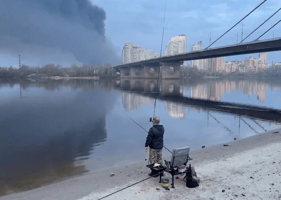 Тим часом чоловік риболовить просто на фоні міста у вогні, разюча реальність: