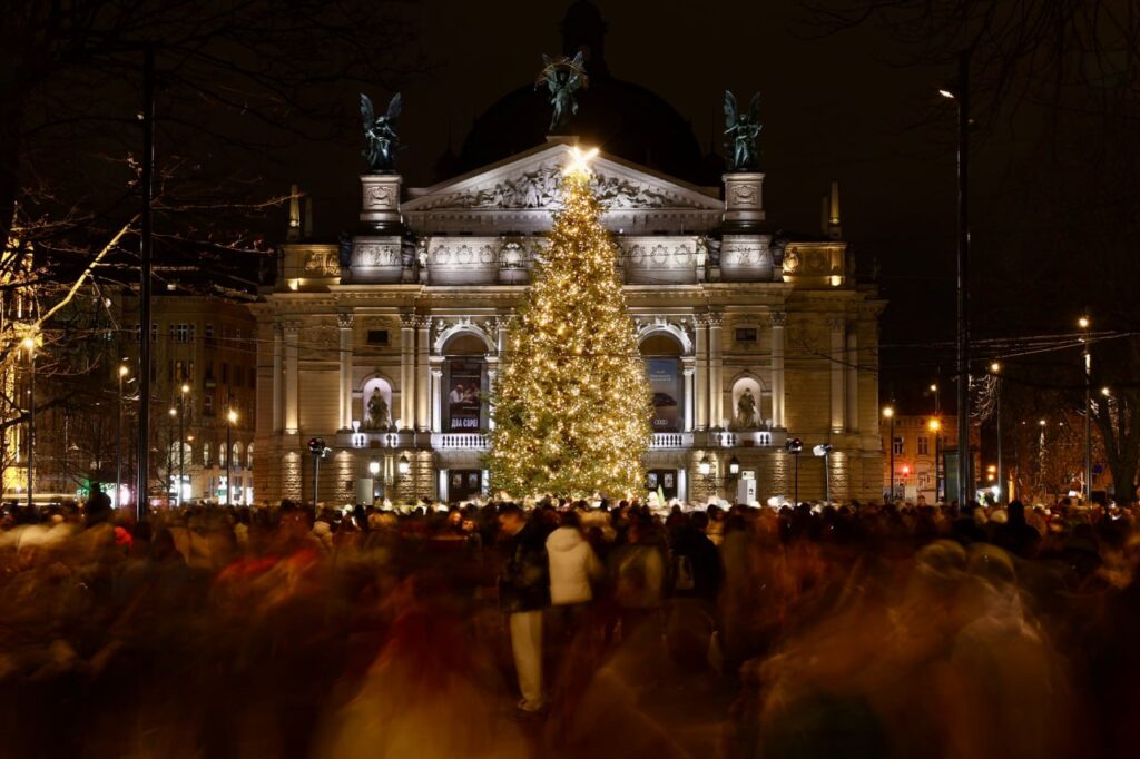 Головна міська ялинка встановлена перед Львівським театром опери та балету на проспекті Свободи. Організатори встановили 14-метрову живу ялинку, яку традиційно подарувала родина із села Сокільники.