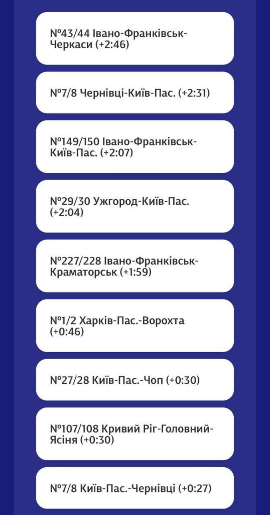 •  №227/228 Івано-Франківськ-Краматорськ (+1:59).
