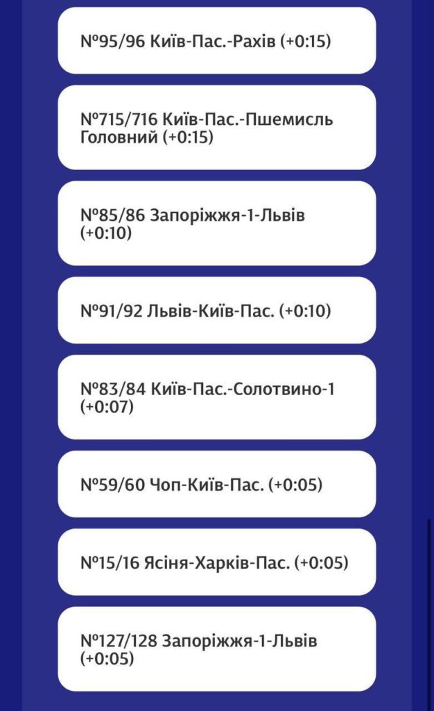 •  №29/30 Ужгород-Київ-Пас. (+2:04)