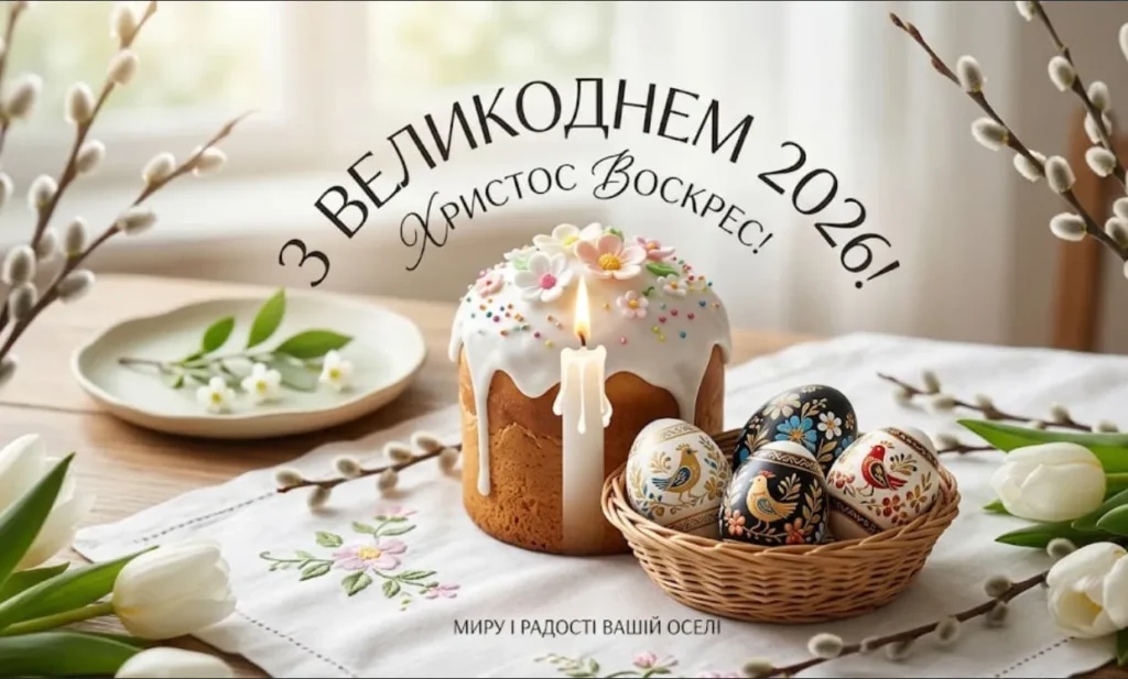 Світлого Великодня! Нехай у цей день здійснюються найкращі бажання, а дім наповнюється затишком, любов’ю та добробутом.