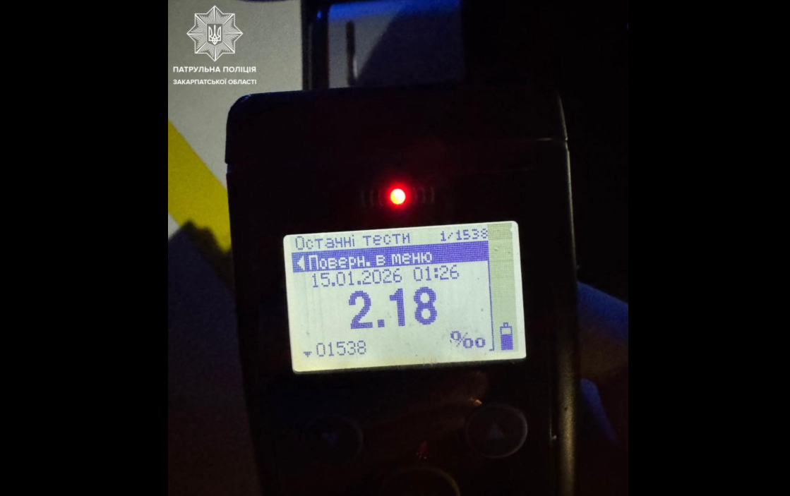 Результат перевірки склав 2,18 проміле, що майже у 11 разів перевищує допустиму норму, встановлену законодавством.