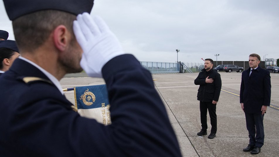 Президент Володимир Зеленський у понеділок, 17 листопада, прилетів з офіційним візитом до Франції. На авіабазі Велізі-Віллакубле, що поблизу Парижа його зустрів французький лідер Емманюель Макрон. Політки підписали декларацію про наміри щодо співробітництва у сфері придбання Україною оборонного обладнання.
