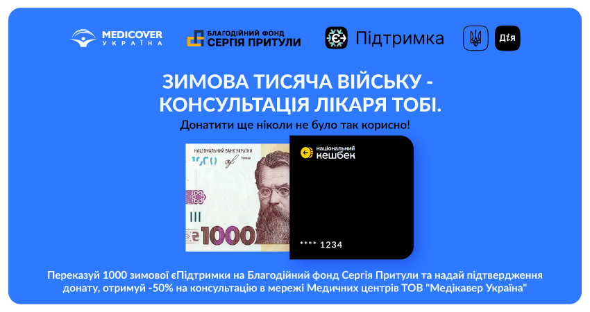 Мережа медичних центрів «Медікавер» долучилася до благодійної ініціативи на підтримку українського війська. У межах акції кожен, хто перерахує 1000 грн «зимової єПідтримки» на користь Благодійного фонду Сергія Притули, отримає 50% знижки на консультацію лікаря у будь-якому медичному центрі мережі.