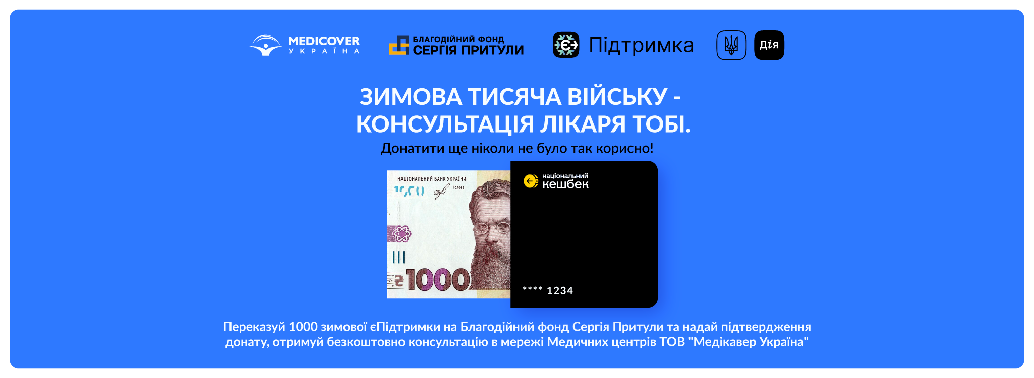 Мережа медичних центрів «Медікавер» долучилася до благодійної ініціативи на підтримку українського війська. У межах акції кожен, хто перерахує 1000 грн «зимової єПідтримки» на користь Благодійного фонду Сергія Притули, отримає 50% знижки на консультацію лікаря у будь-якому медичному центрі мережі.