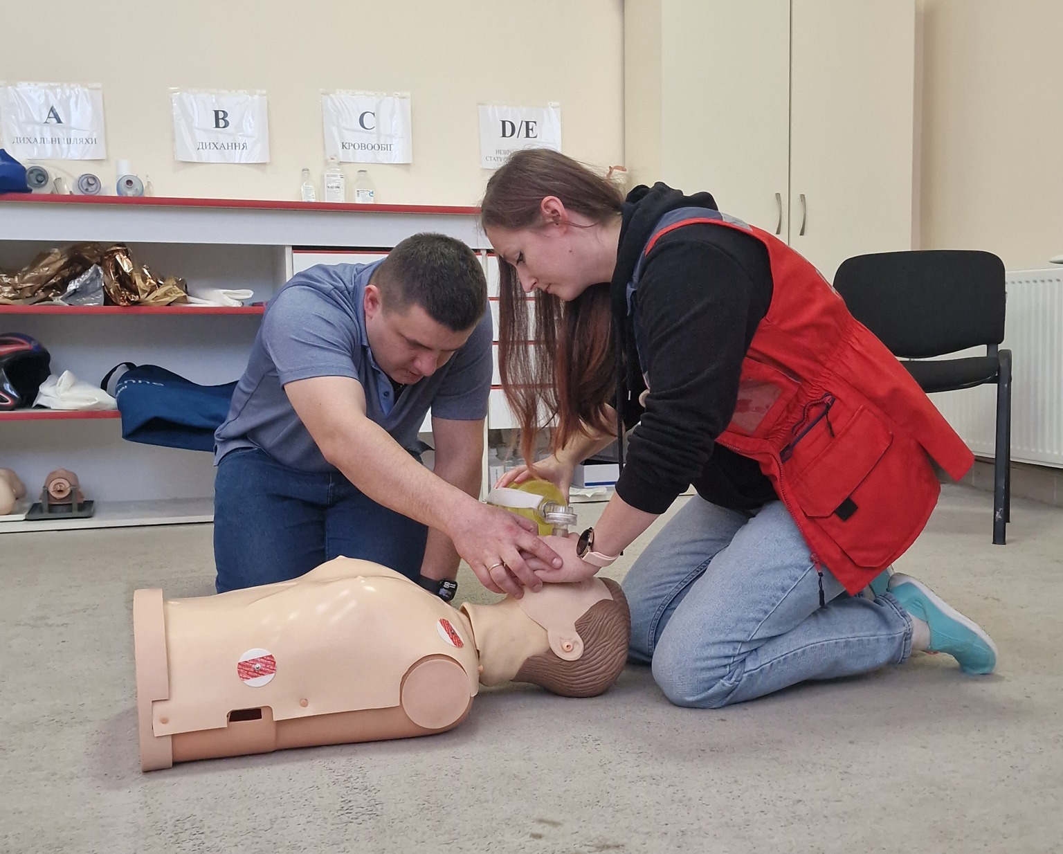 Цього разу заняття присвячені базовим реанімаційним заходам для дітей і дорослих. Медики відпрацьовують алгоритми дій не лише теоретично, а й на практиці, використовуючи манекени.