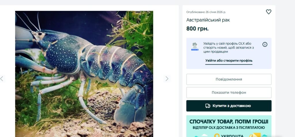 «Самочки австралійського рака для розмноження», – пише продавець.