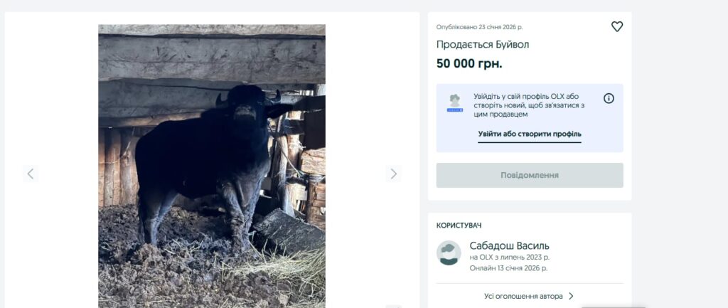 Продавець зауважує, що вага тварини понад 400 кг, а його вік – 2 роки.