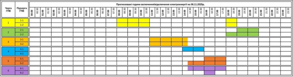 Графік відключень електроенергії на 08.11. Закарпаттяобленерго