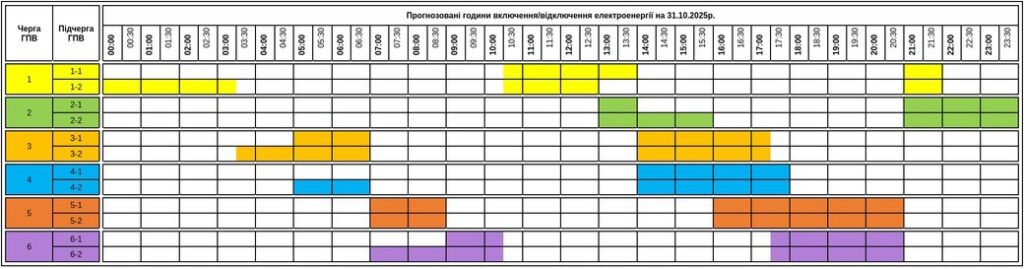 На Закарпатті 31 жовтня для споживачів застосовують графіки погодинних відключень електроенергії. Обмеження діятимуть протягом доби для всіх черг.