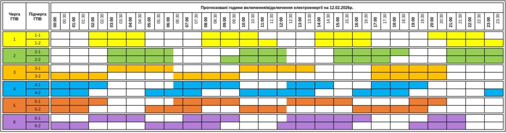 На Закарпатті 12 лютого для споживачів застосують графіки погодинних відключень електроенергії.