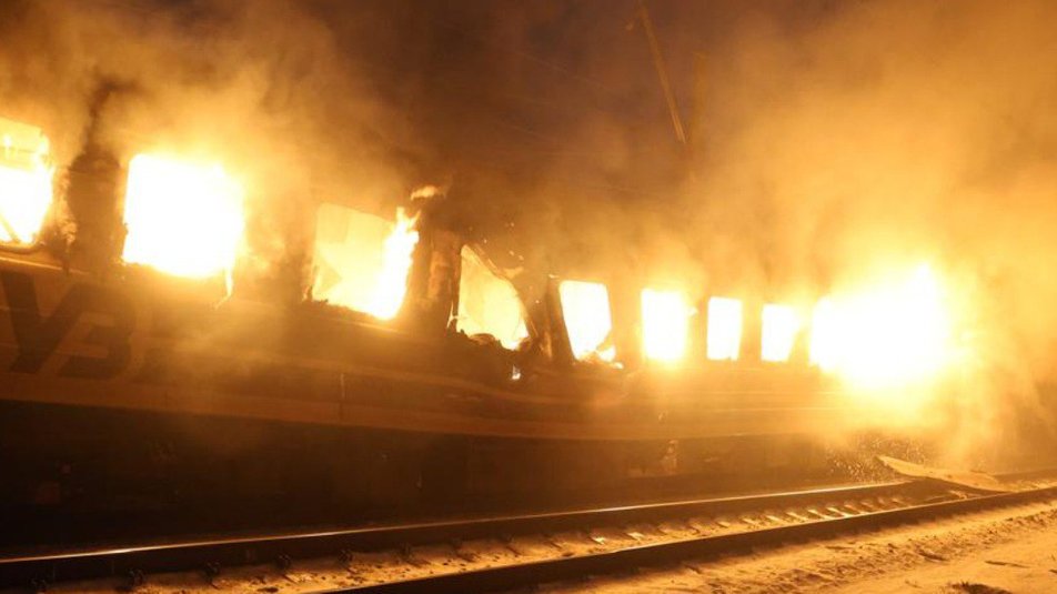 Фрагменти п’яти тіл знайшли на місці влучання РФ по пасажирському поїзду в Харківській області 27 січня. Станом на 23:07 пожежу в поїзді Барвінкове — Чоп, атакованому росіянами на Харківщині, загасили. Аварійно-рятувальні роботи завершені.