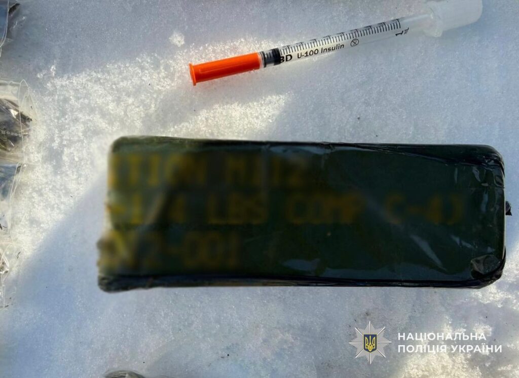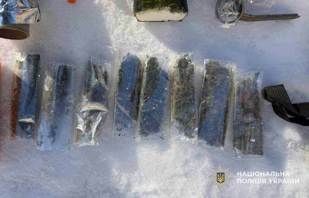 Під час обшуку у підозрюваного вилучили близько 30 грамів метамфетаміну, пакети з марихуаною, приладдя для фасування, готівку, а також небезпечні предмети — гранату із запалом і близько 200 грамів вибухової речовини.