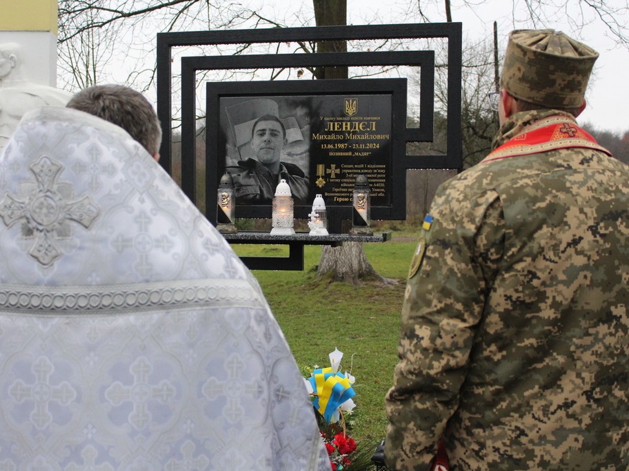 У неділю зібралася родина, військовослужбовці, ветерани війни, односельчани, сусіди. Панахиду й освячення провели спільно священник Свято-Михайлівського храму Юрій Павлович (у цьому храмі Михайла Лендєла хрестили, тут вінчався, звідси проводжали у засвіти) та військовий капелан Іван Бундзяк. До присутніх звернувся очільник Іршавської міської територіальної громади Віктор Симканинець, фахівець ветеранського простору «Вдома» Іван Микита, отці. Був присутній й староста Іван Зем’янський.