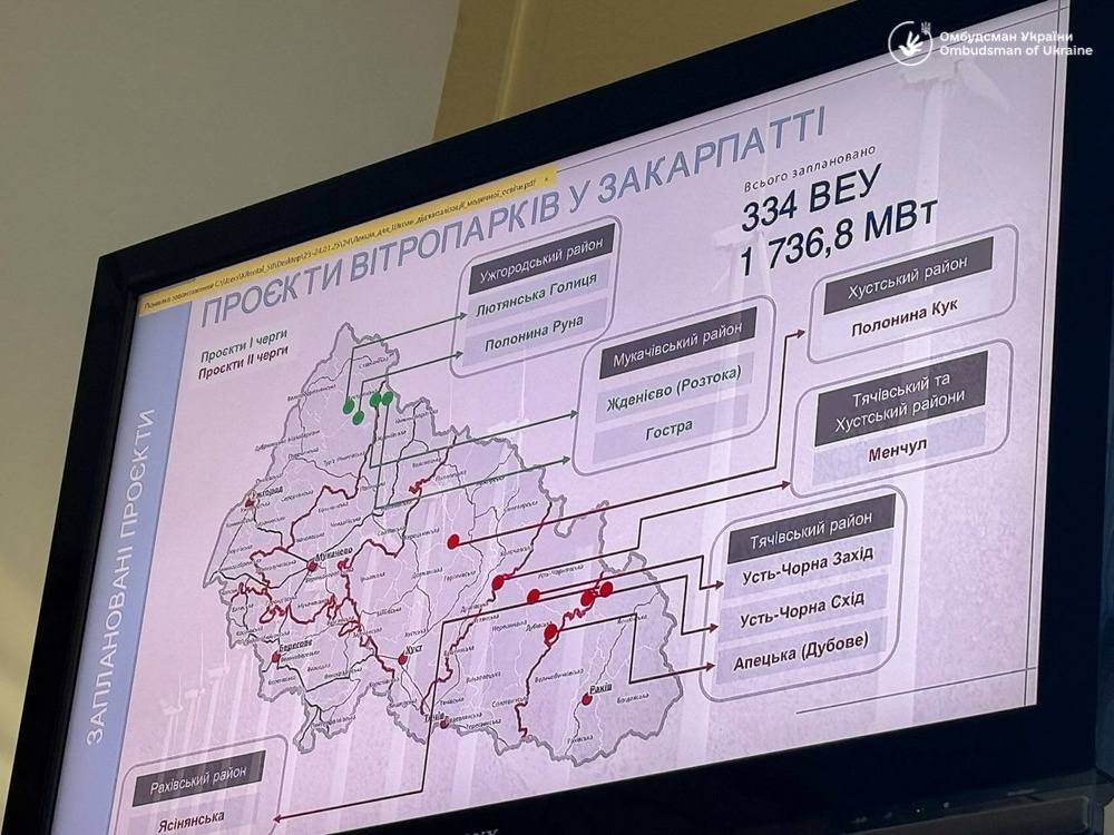 За дорученням Уповноваженого Верховної Ради України з прав людини Дмитра Лубінця Представник Уповноваженого Верховної Ради України з прав людини в Закарпатській області Андрій Крючков взяв участь у виїзному засіданні комітетів Верховної Ради України, присвяченому стану дотримання природоохоронного законодавства та вивченню ситуації довкола будівництва вітрових електростанцій у гірських районах області.