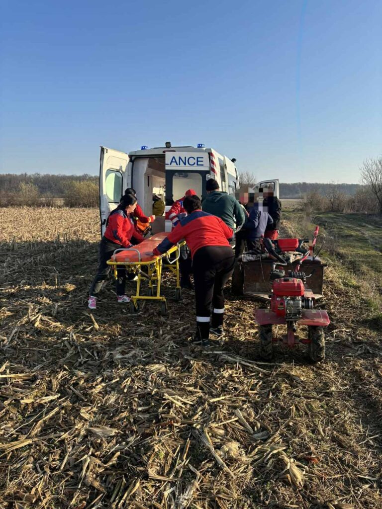 Коли бригада наближалася до місця події, з’ясувалося, що знайомі вже вивозили травмованого з лісу на причепі мотоблока. Медики зупинили їх у полі та почали надавати допомогу просто неба.