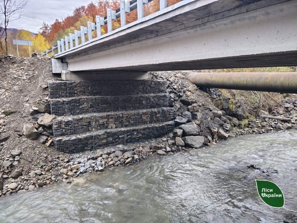“Основа – міцна армована монолітна бетонна плита. Споруда оснащена металевими відбійниками, що виконують функцію бар’єрної огорожі, а також системою водовідведення, яка запобігає накопиченню дощової води. Береги укріплено габіонами для уникнення розмивання насипів і опор. Також встановлено дорожні знаки”, — додали у лісогосподарському підприємстві.