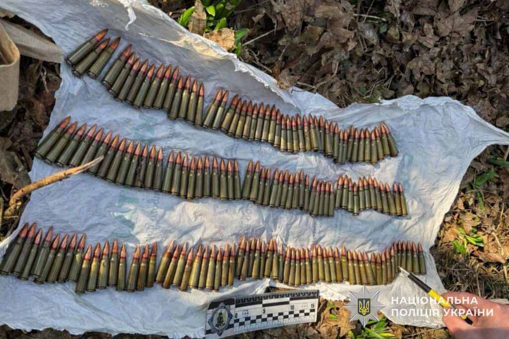 Під час огляду тайника правоохоронці вилучили кілька бойових гранат та майже 300 патронів різного калібру до автоматичної зброї.