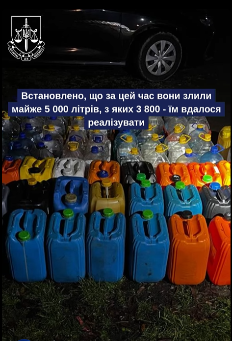 “У жовтні-листопаді 2025 року задокументовано шість таких епізодів. За цей час підозрювані злили майже 5 000 літрів дизелю, з яких понад 3 800 літрів уже встигли реалізувати. Орієнтовна вартість викраденого становить понад 300 тисяч гривень”, — ідеться у повідомленні.