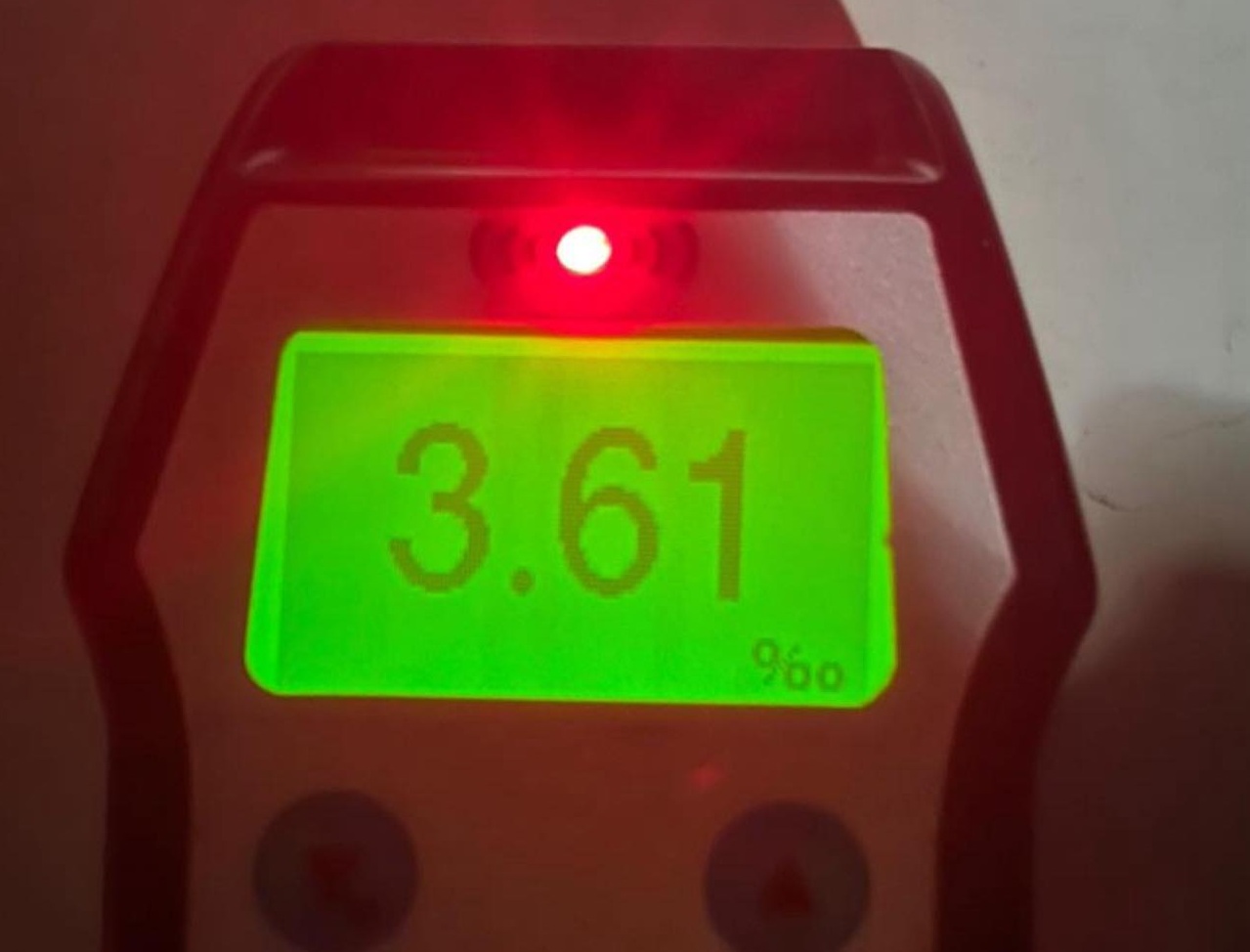 Під час спілкування інспектори помітили у водія характерні ознаки сп’яніння — різкий запах алкоголю, порушення мовлення та координації. Огляд на місці підтвердив підозри: прилад показав 3,61‰ алкоголю в організмі.