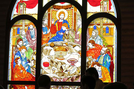 У Мукачеві в храмі Зіслання Святого Духа представлений унікальний вітраж із сюжетом Таємної вечері, який вважають найбільшим в Україні. Особливістю роботи є виконання у стилі Тіфані та вертикальна композиція — рідкісне рішення для сакрального мистецтва.