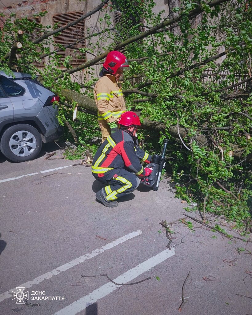 Рятувальники оперативно розчищали дороги і території — загалом прибрали п’ять повалених дерев. Унаслідок негоди пошкоджено п’ять легкових автомобілів, а також покрівлю житлового будинку.