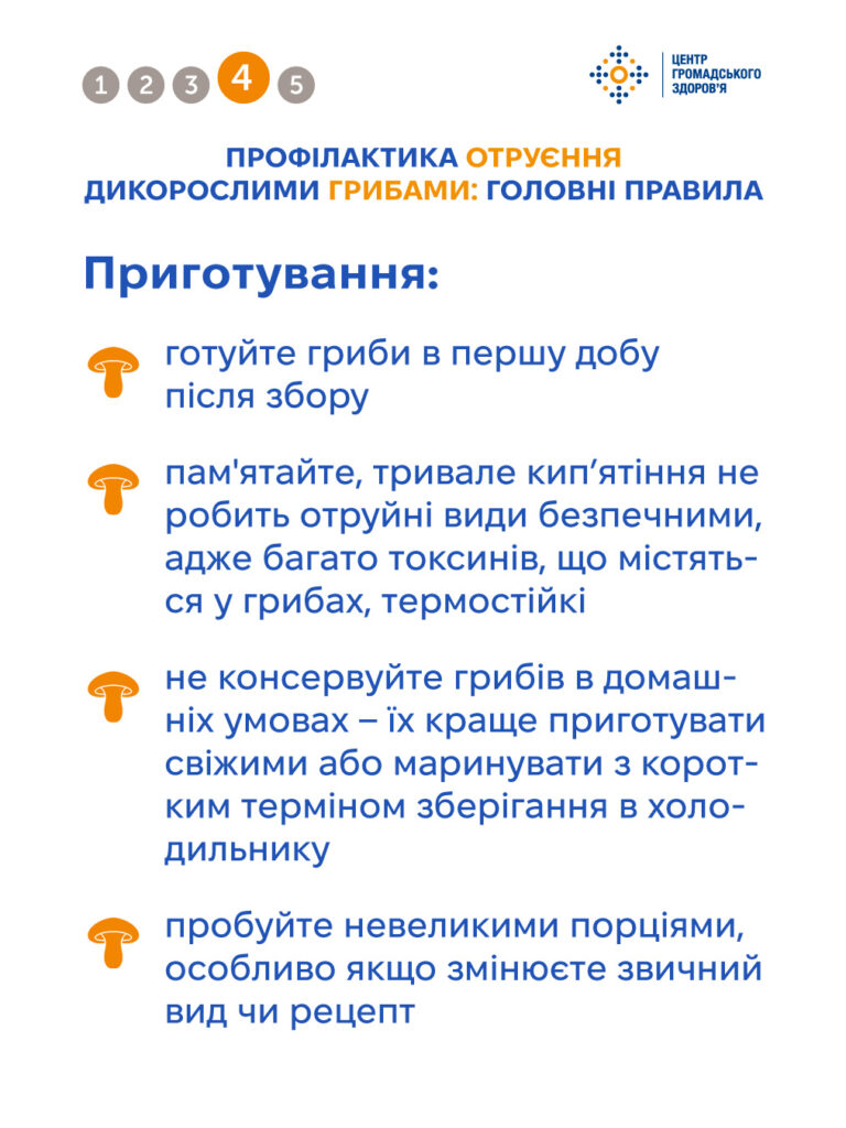 Пам’ятайте: найкраща альтернатива дикорослим грибам — культивовані (штучно вирощені) печериці та гливи або сушені та мариновані гриби промислового виробництва. Вживання таких грибів значно знижує ризики отруєння, адже вони проходять контроль якості.