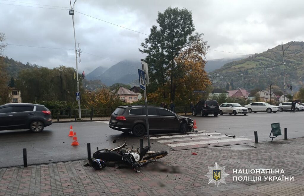 Наразі встановлено, що 21-річний житель міста Рахів разом із 15-річним пасажиром на незареєстрованому мотоциклі рухався вулицею Миру. Чоловік не впорався з керуванням, виїхав на зустрічну смугу та допустив лобове зіткнення двоколісного з автомобілем «Volkswagen», яким керував 38-річний місцевий житель.