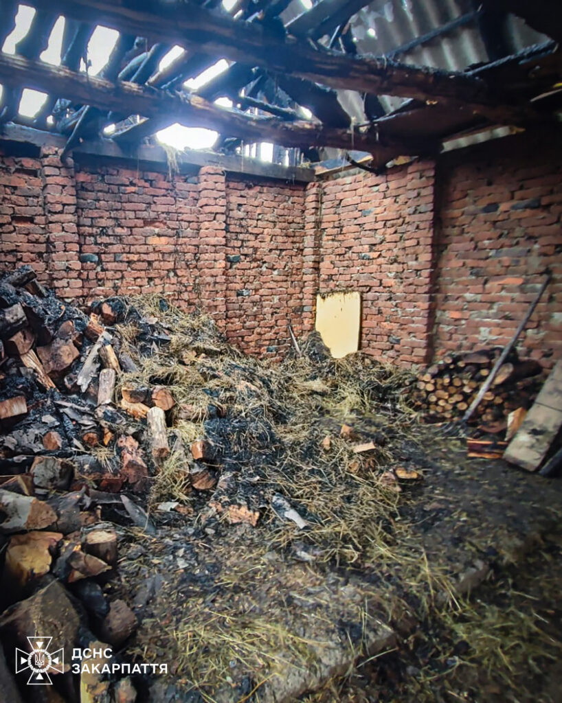 В результаті вогонь знищив близько 100 кг сіна та пошкодив надвірну споруду на площі 10 кв. м.