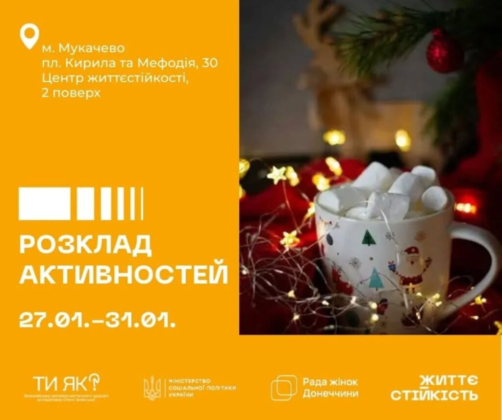 З 27 по 31 січня у Мукачеві відбудеться тиждень ментального відновлення у Центрі життєстійкості. Мешканців громади запрошують провести цей час у просторі підтримки, спокою та уважного ставлення до власного емоційного стану.