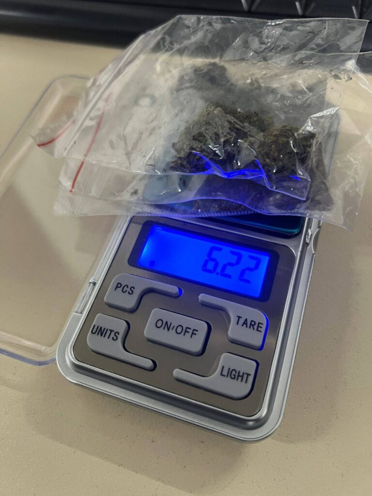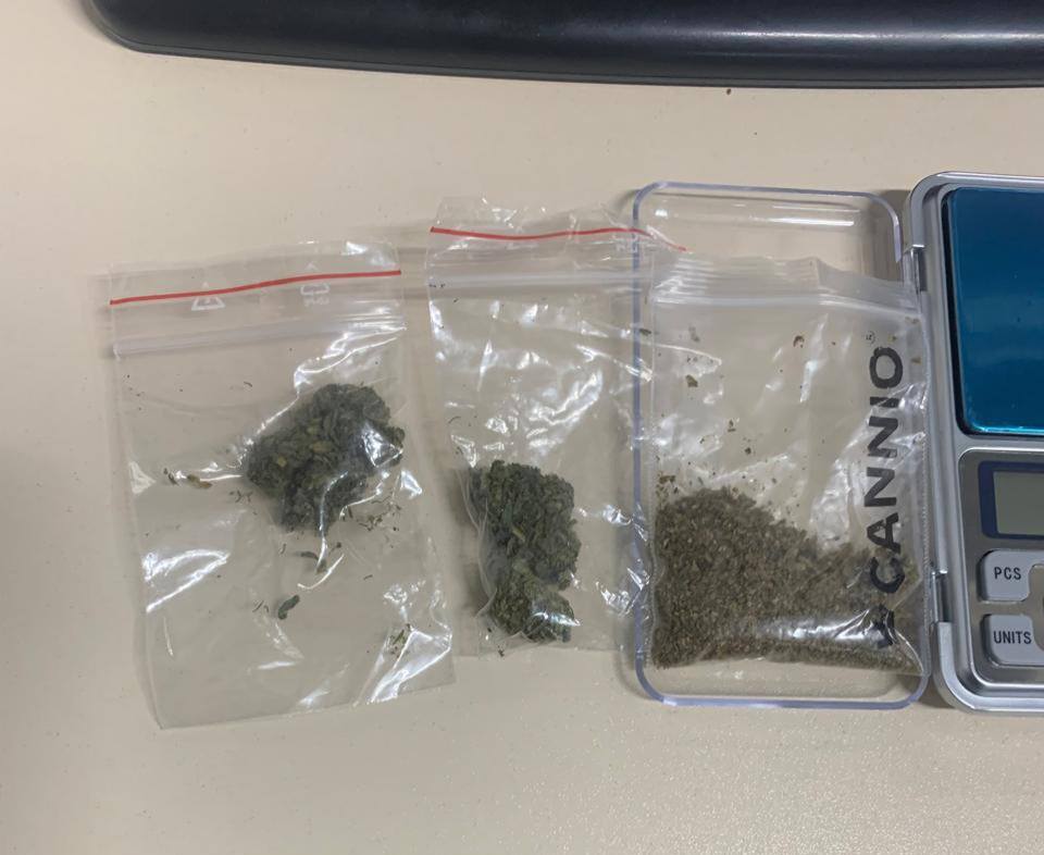 Під час огляду у нього виявили три пакетики сіро-зеленої речовини, схожої на марихуану, у кишенях верхнього одягу. На місце події викликали Нацполіцію для проведення слідчих дій.