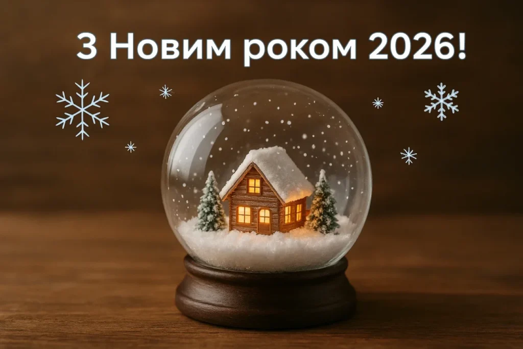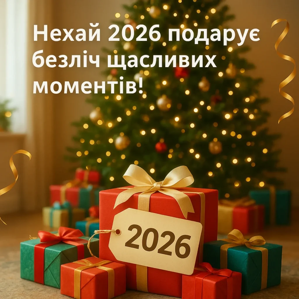 З Новим роком! Бажаю, щоб 2026 рік був сповнений яскравих моментів, творчих ідей, нових знайомств і щирої любові. Нехай удача завжди буде на твоєму боці.