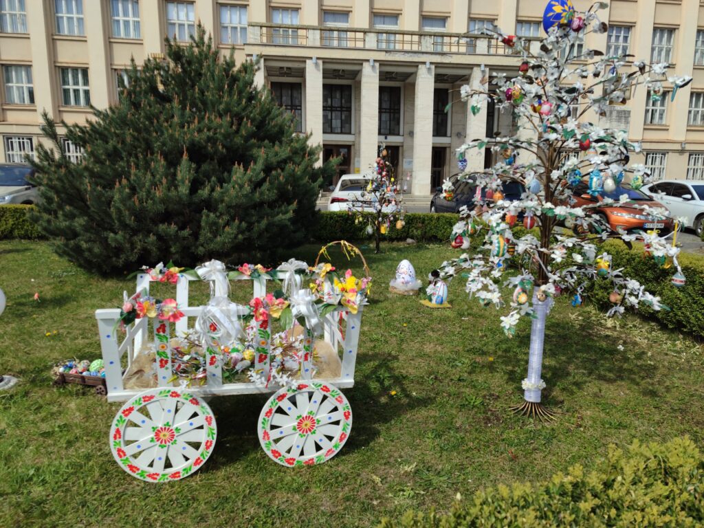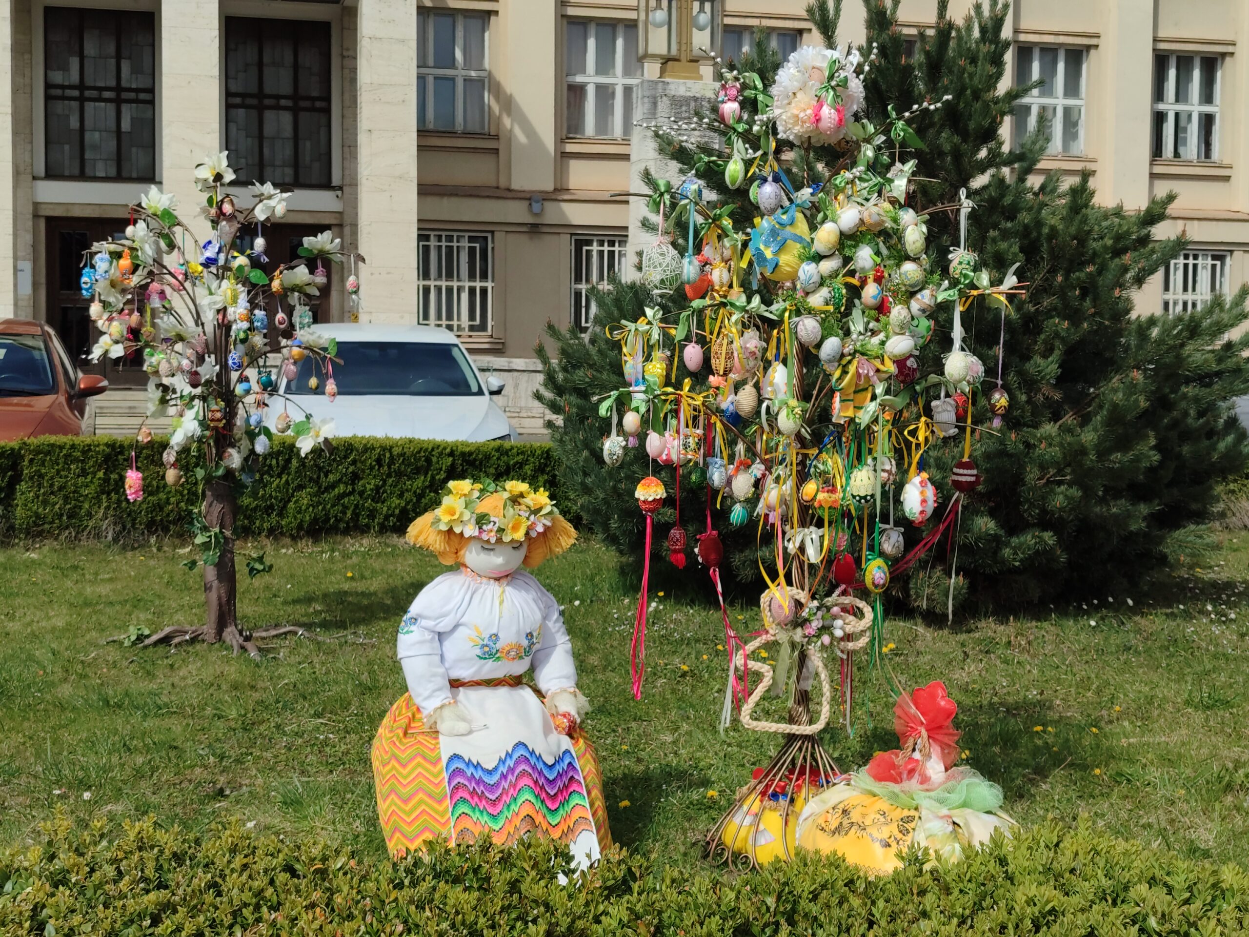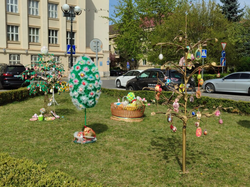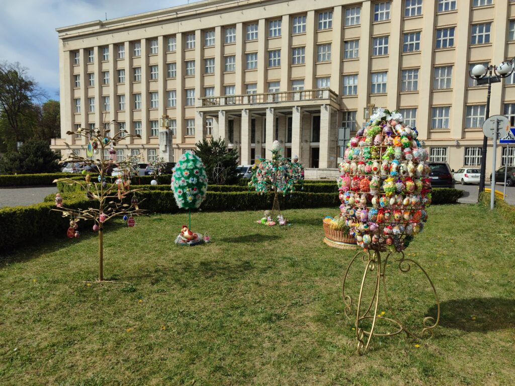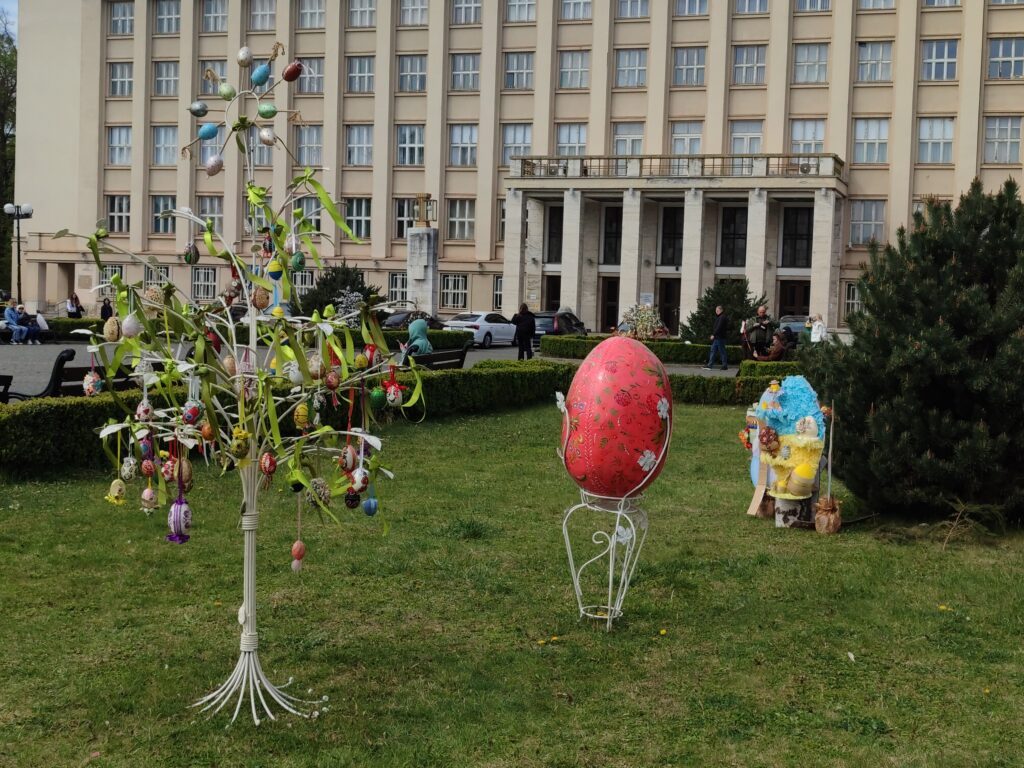 На площі Народній в Ужгороді до Великодня облаштували відкриту експозицію писанок.