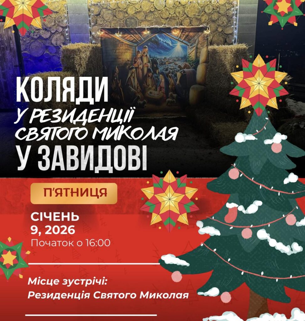 9 січня у селі Завидово відбудеться святкове різдвяне дійство — коляди в резиденції Святого Миколая. Початок заходу — о 16:00.