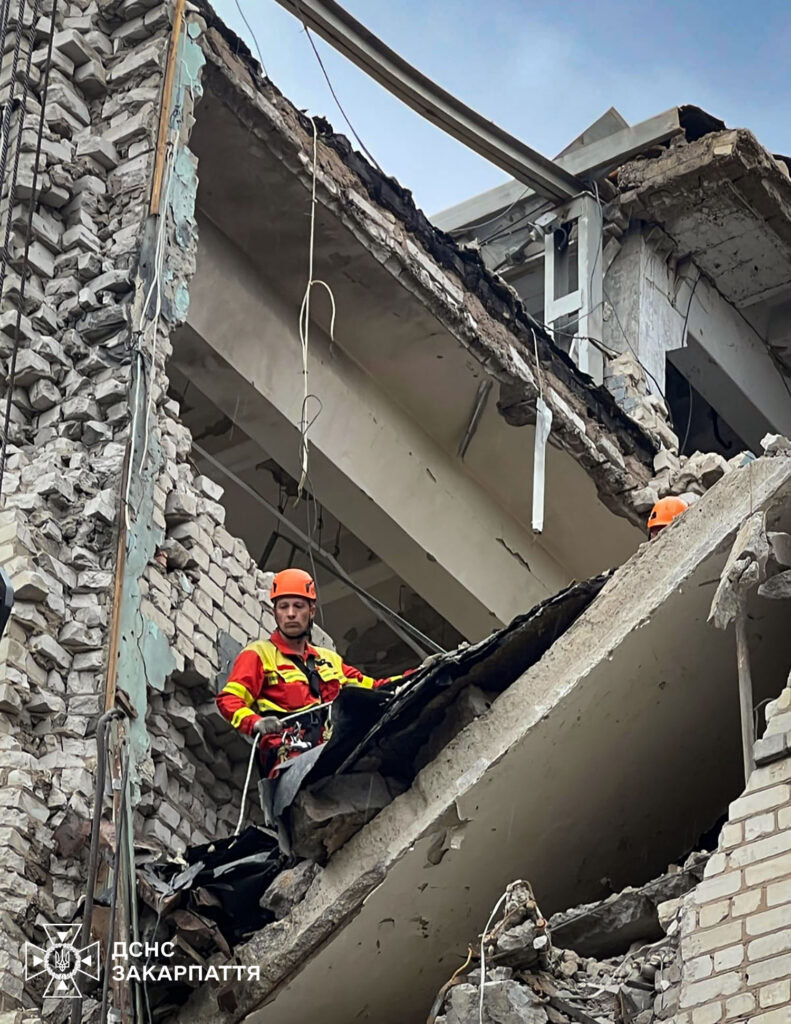 Під час одного з викликів безпілотники влучили у житлову п’ятиповерхівку. Плити перекриття обвалилися, під завалами опинилися люди, серед них — немовля та подружжя. Рятувальники почули голоси серед уламків і розпочали деблокування. Немовля знайшли живим у візочку. Жінку дістали першою. Чоловік був затиснутий бетонною плитою — його звільняли за допомогою домкратів та спеціального інструменту, після чого наклали турнікет і передали медикам.