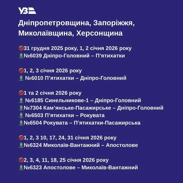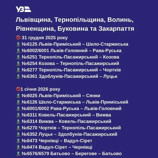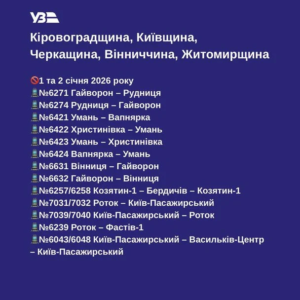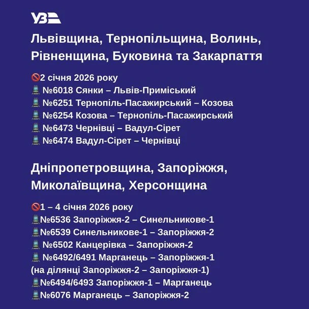 “Новорічні свята — це час затишку і трохи іншого ритму життя. У ці дні пасажирів на окремих приміських напрямках меншає”, — пояснили в Укрзалізниці.