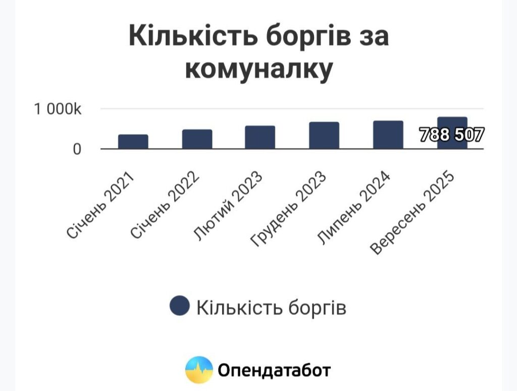 Рекордні 788 тисяч боргів за комуналку налічуються в Україні станом на середину вересня за даними Єдиного реєстру боржників. Це на 13% більше, ніж у липні 2024 року. Про це повідомляють аналітики «Опендатабот». На Закарпатті 10 335 жителів мають борги за комунальні послуги. Якщо порівнювати з сусідними областями, то це менше, ніж у львівян, але вдвічі більше ніж у франківців.
