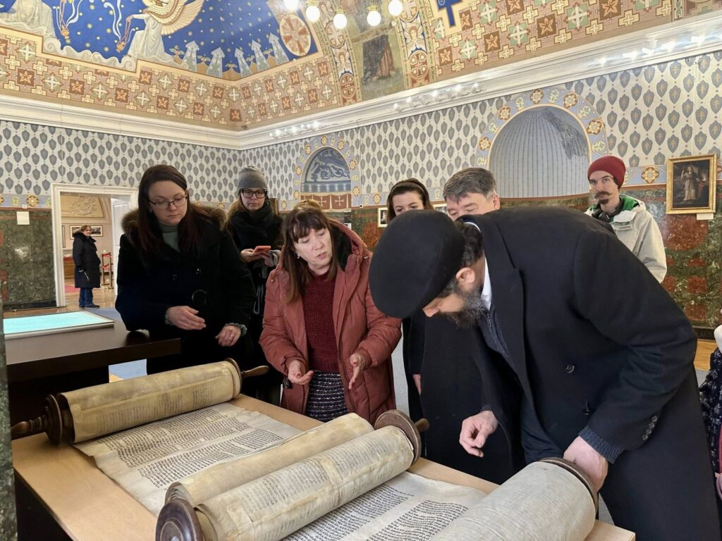 Під час зустрічі головний рабин поділився цікавими фактами з історії єврейської громади краю та розповів про унікальні стародавні книги. Особливу увагу привернули сувої Тори з музейної колекції, які представила завідувачка відділу фондів Анастасія Хома. Рабин продемонстрував особливості читання Тори та розповів про традиції її створення й збереження.