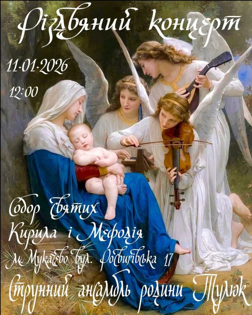 11 січня в Мукачево відбудеться різдвяний концерт духовної та класичної музики. Подія пройде у Собор святих Кирила і Мефодія (вул. Росвигівська, 17). Початок — о 12:00.