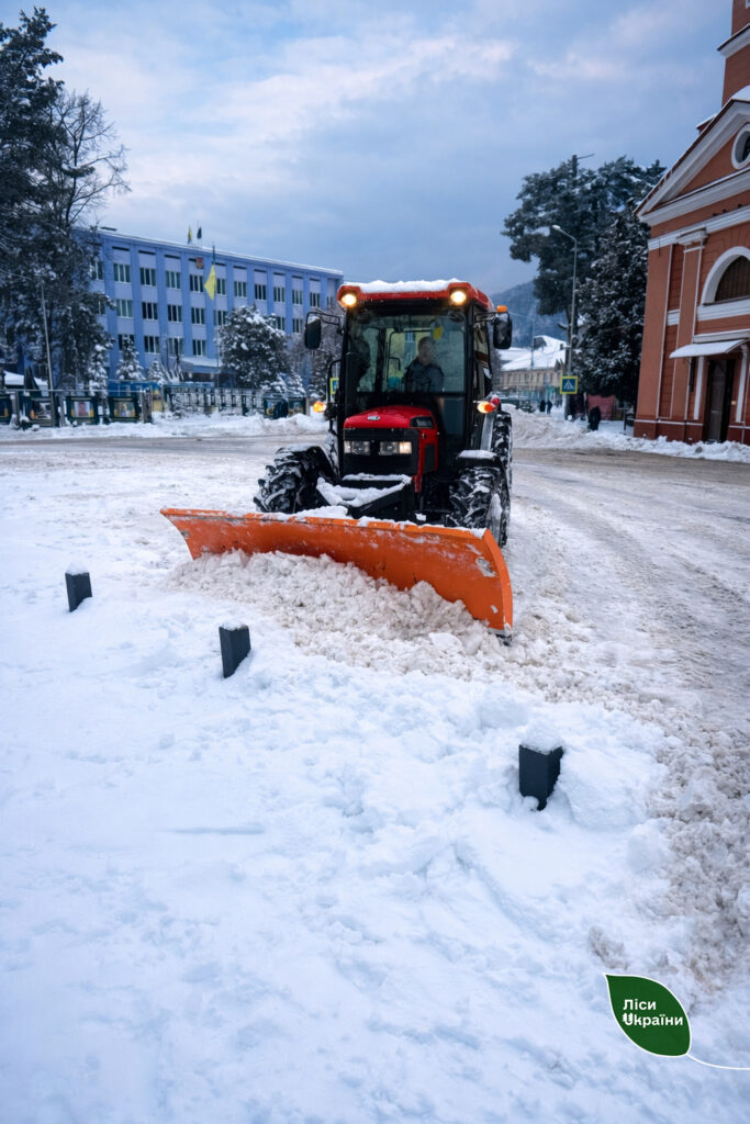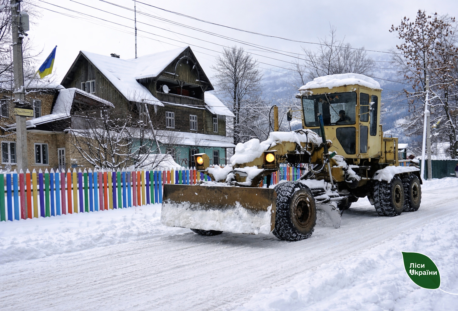 Через гірський рельєф і значні снігові опади місцева техніка не всюди справляється з навантаженням, тому лісівники залучили власні трактори та спецтехніку.