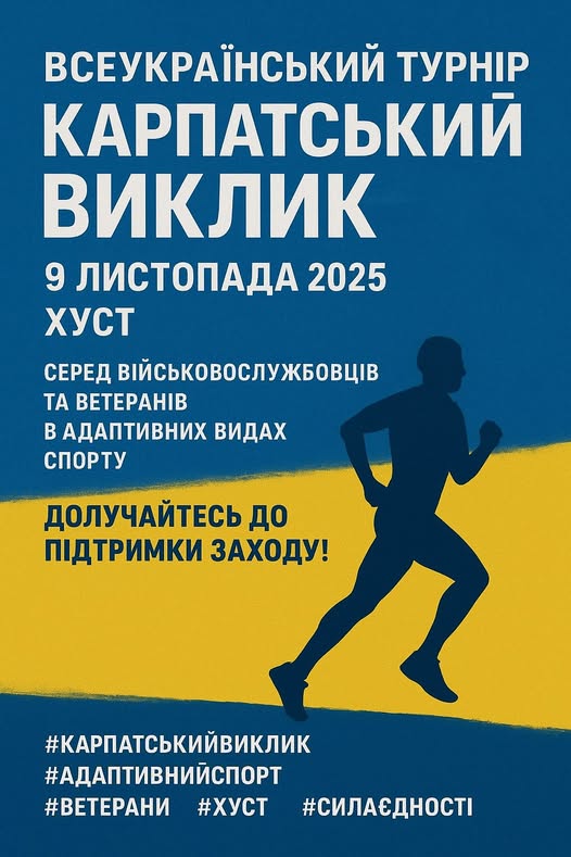 9 листопада у Хусті на стадіоні “Карпати” відбудеться Всеукраїнський турнір “Карпатський Виклик” – змагання серед військовослужбовців та ветеранів в адаптивних видах спорту.