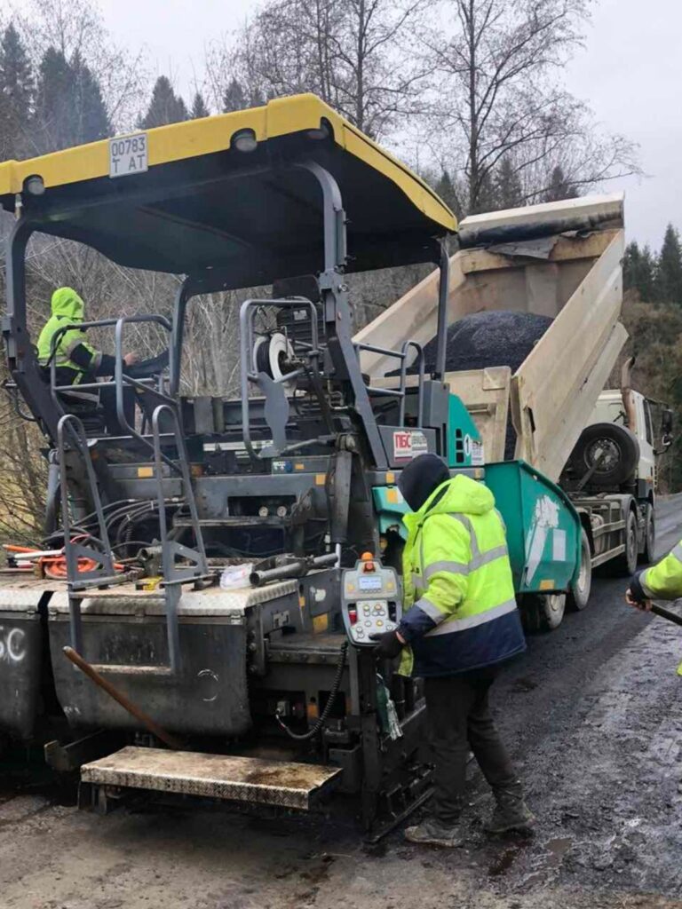 У роботі задіяна сучасна дорожня техніка, асфальтоукладальники, катки, спецтранспорт для доставки матеріалів.
