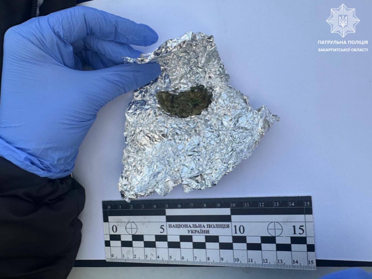 У салоні автомобіля правоохоронці виявили два згортки з фольги із зеленою подрібненою речовиною, яка зовні нагадувала наркотичну. Крім того, у машині знайшли ще один згорток із подрібненою речовиною.