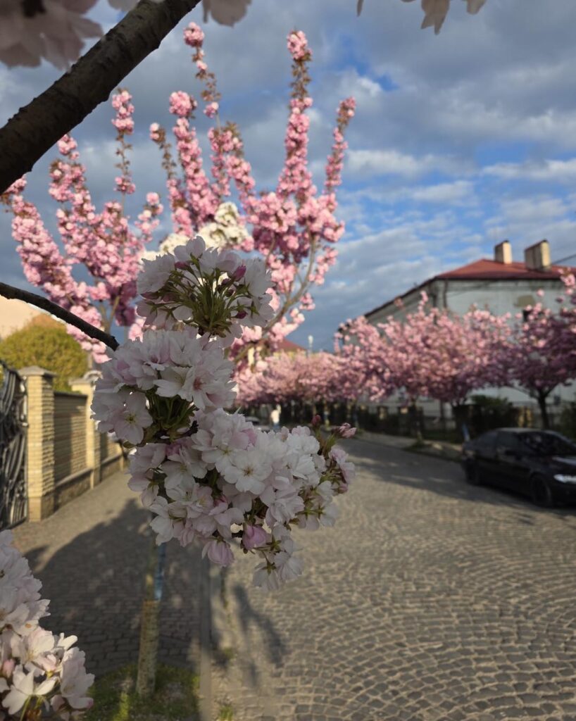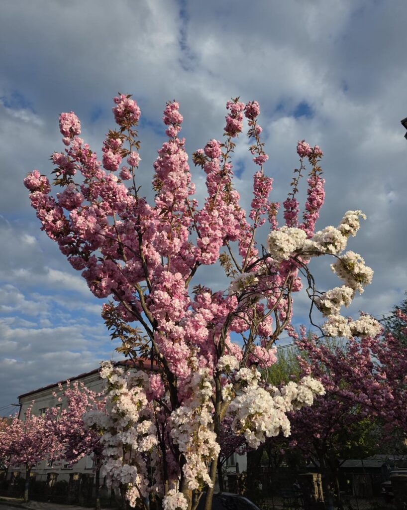 У Мукачеві, поряд із традиційним рожевим цвітінням сакур, можна побачити незвичайне дерево з бінарним забарвленням квітів.